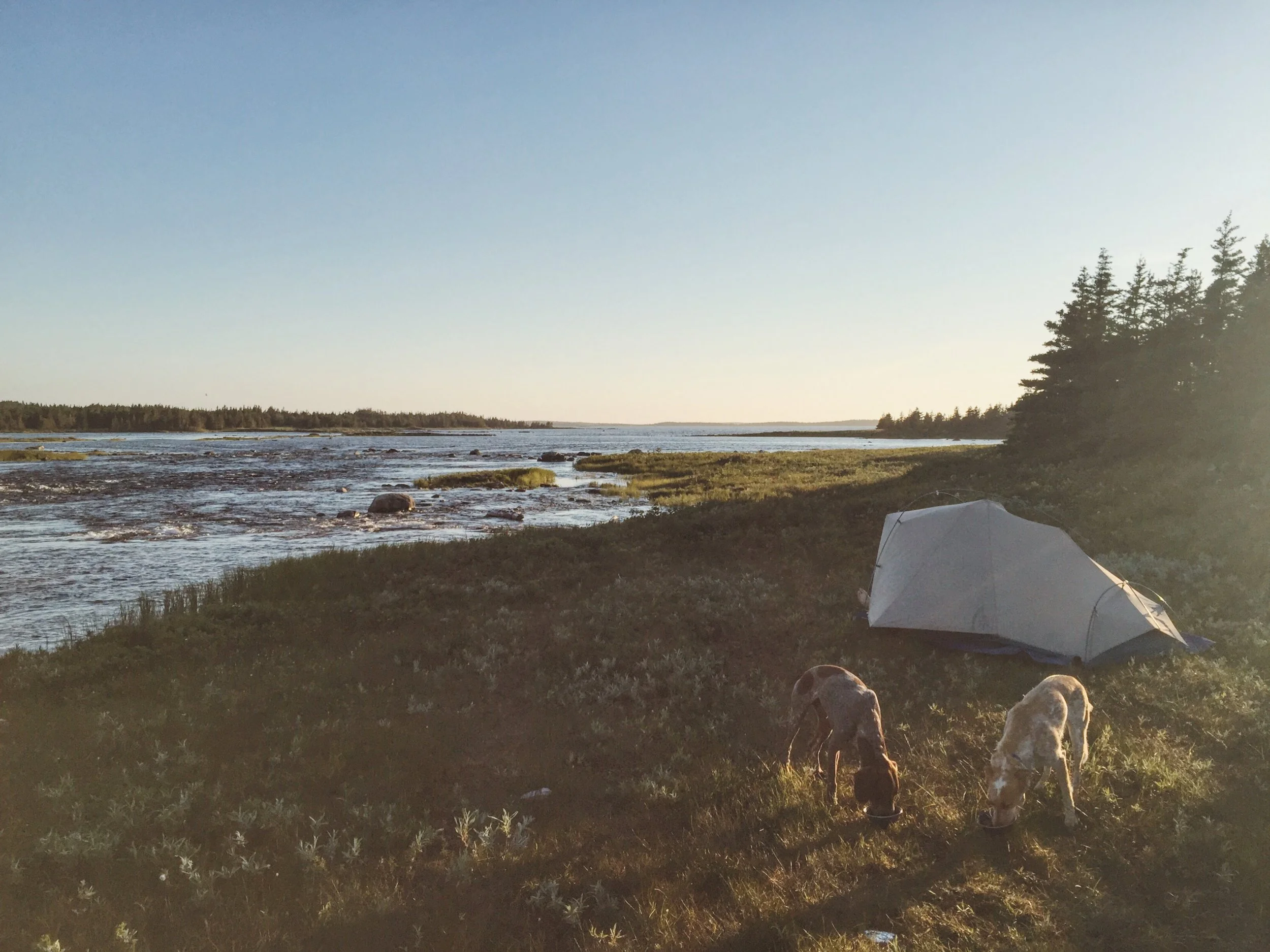 I had a custom pack made my Mosher Originals for Rufio for this trip. It worked perfectly. Load was kept close to his body and the weight is distributed better than his old one so he could move even more quickly throughout the trail. His old orange one worked perfectly fine for a less rambunctious Wendy.